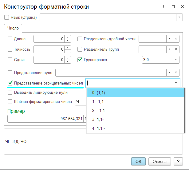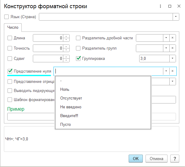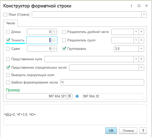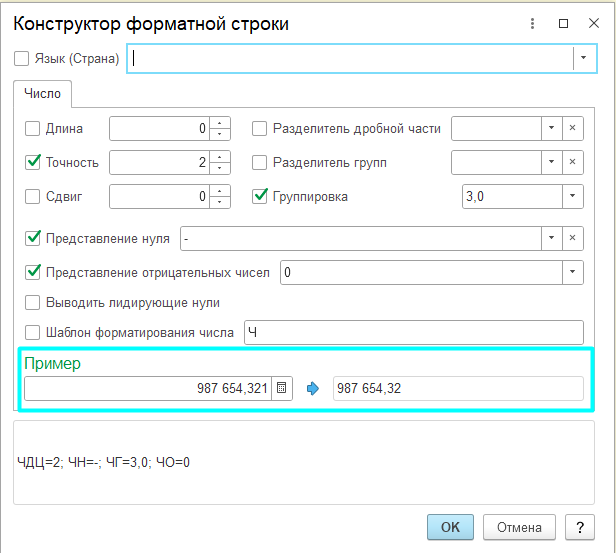 Для доступа к расширенным настройкам нажмите на значок многоточия (...). Откроется окно «Конструктор форматной строки».