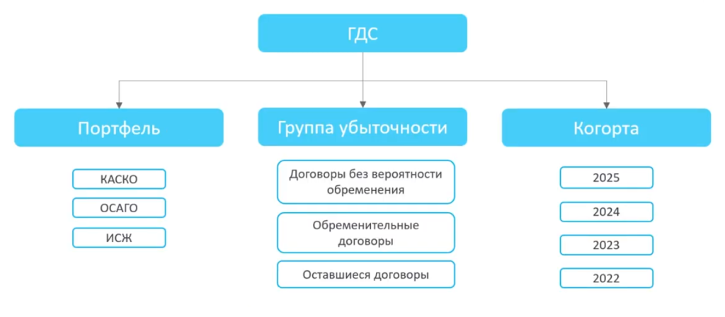 - Для каждого типа страхования и группы убыточности предусмотрена отдельная группа счетов.