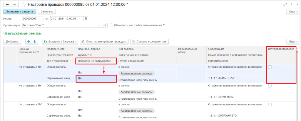 Настройки уже сохранены в Калькуляторе. При этом, пользователь может скорректировать набор выгружаемых проводок. Система его запомнит и при обновлении настройки не нужно вводить заново.